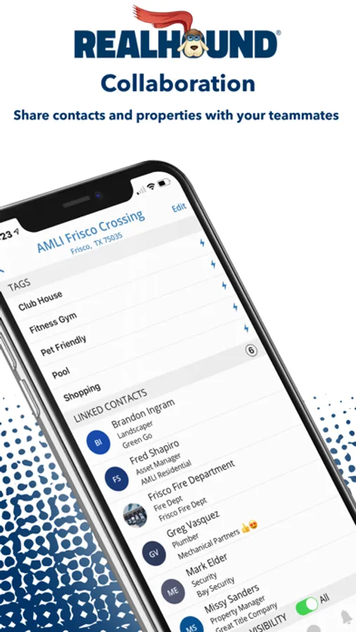 • Link properties to contacts in Realhound’s mobile CRM