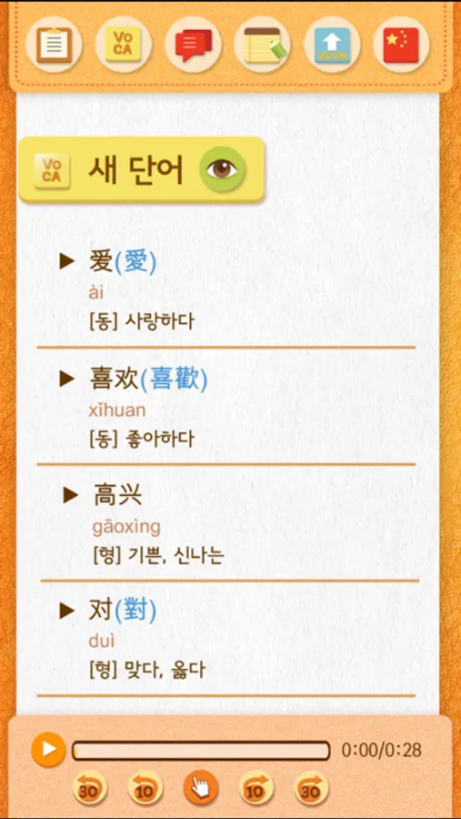 3. 문장마다 뜻뿐 아니라 병음을 챙겨주기 위해 노력했습니다.