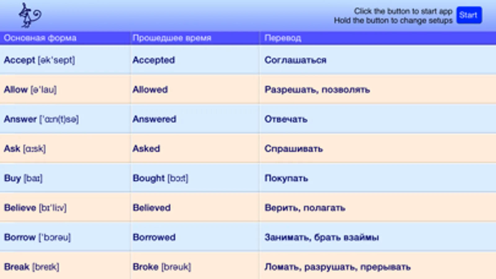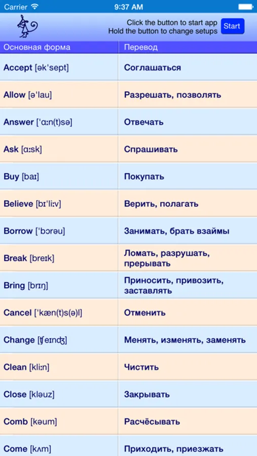 На первых занятиях лучше выбрать один или два хорошо знакомых глагола. Как только перевод фраз, произносимых программой, не будет вызывать трудностей, можно добавлять новые глаголы.