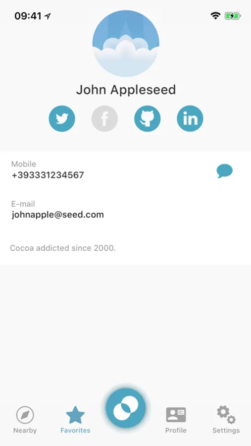 By configuring your personal card, you will be able to share your contact among friends and nearby people, thanks to Lookii™ technology.