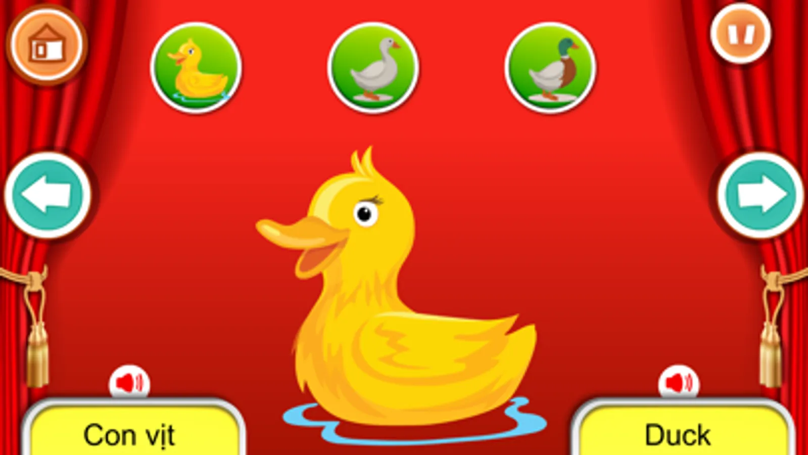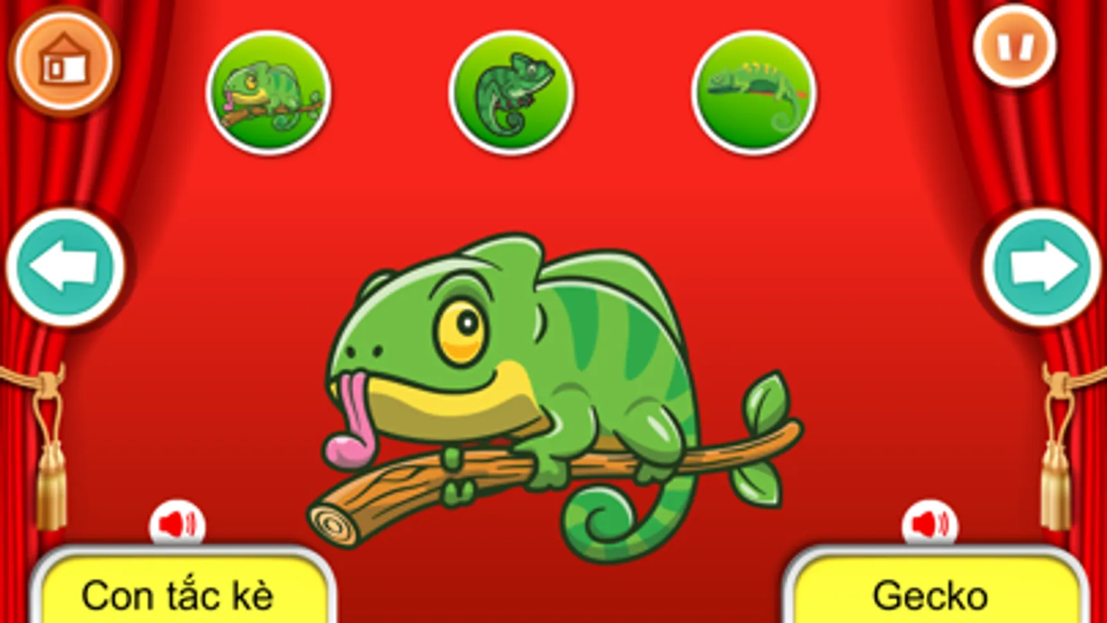Mỗi con vật có nhiều hình ảnh minh hoạ và giọng đọc con vật dễ thương.