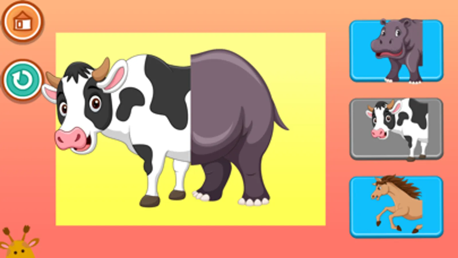 - Ghép 2 nửa trái và phải con vật cho hợp lý