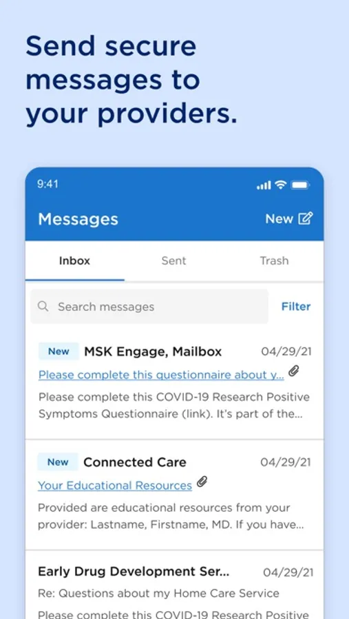 • Connect your account to Apple Health to pull health-related data from your personal devices right into MSK MyChart.