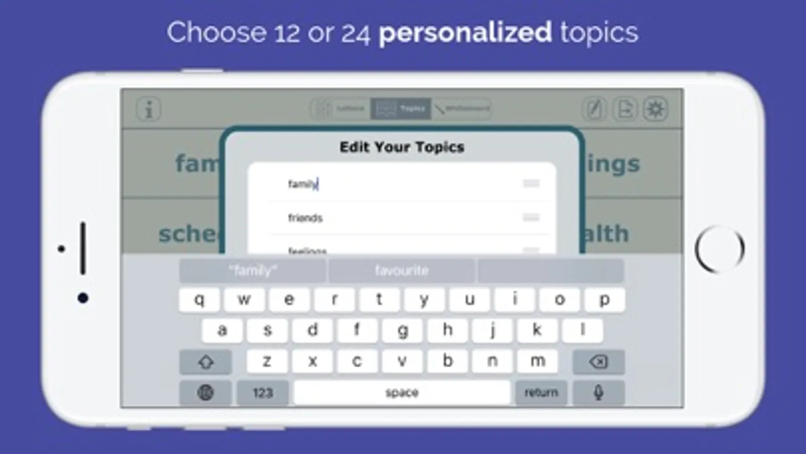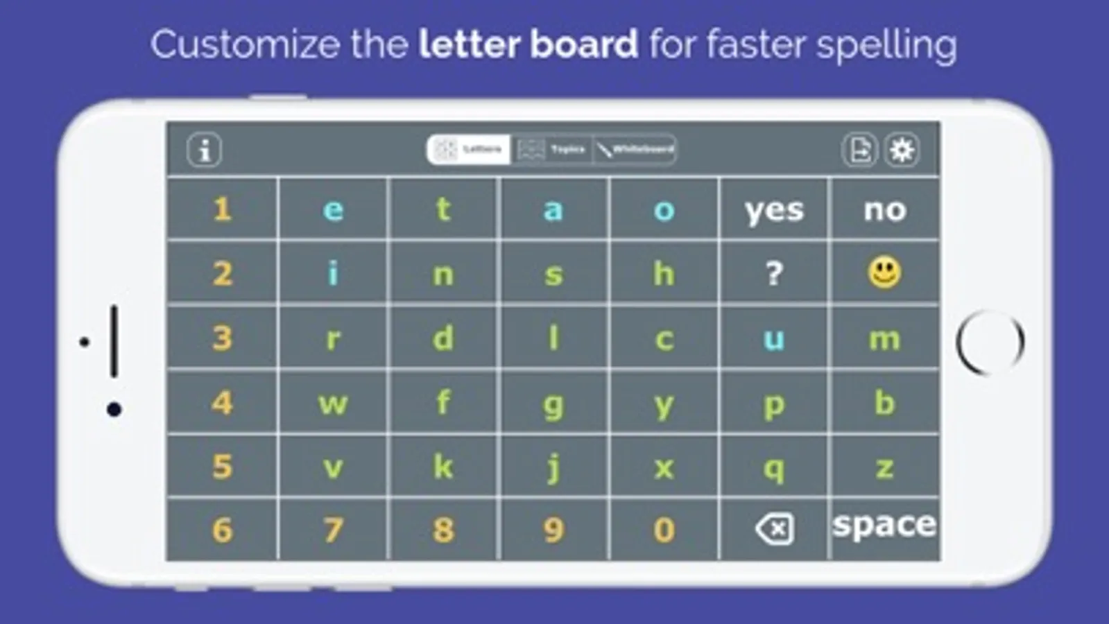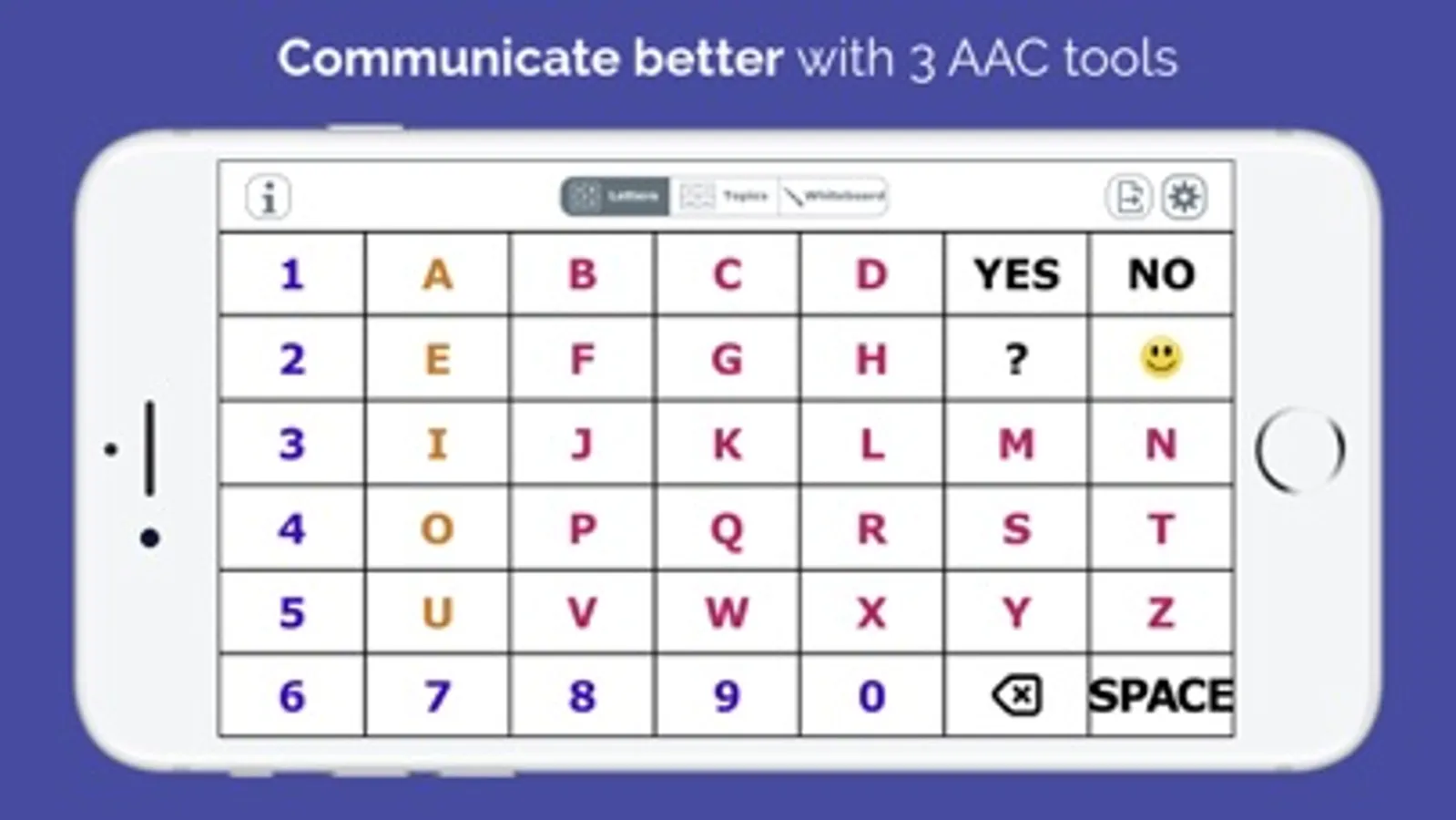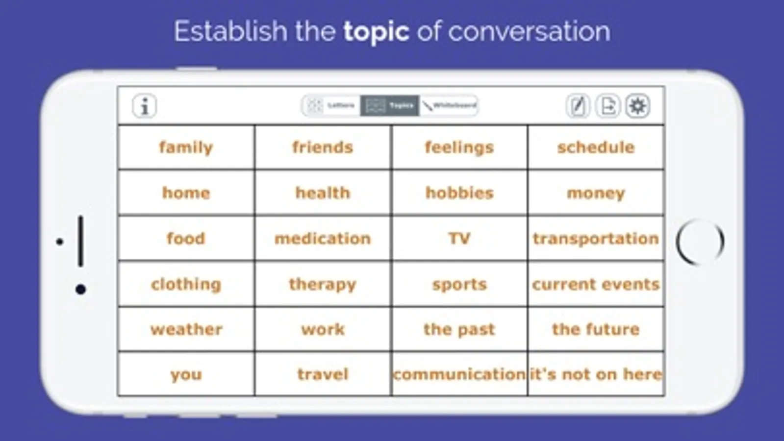 Sometimes just giving a hint or context is all your listener needs to understand you. The first letter or two. The general topic. AlphaTopics is the perfect AAC app for people whose natural speech is not always clear.