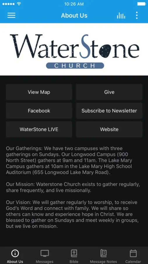 The WaterStone Church app was developed with the Subsplash App Platform.