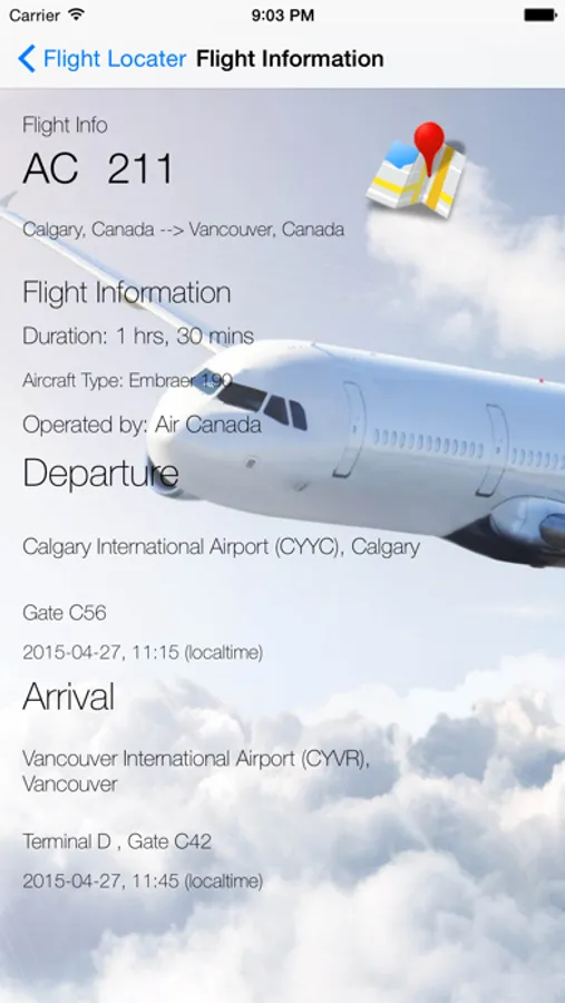 However, please be warned that the information displayed may be inaccurate, so DO NOT use this app as your primary source for your flight details. Instead, refer to the information provided to you by your ticket provider or airline in case of any last minute flight changes. Always cross check information from the phone with the information from your ticket provider/airline!