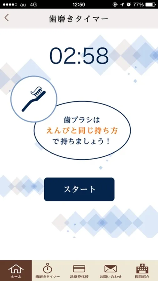 歯磨きタイマーや診察券代替機能など、アプリならでは限定サービスが搭載されています。
