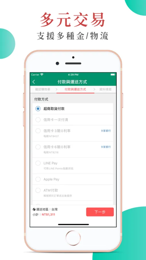 3. 多元付款:信用卡(可分期)、APPLE PAY、LINE PAY、街口支付、ATM轉帳、超取付款...等