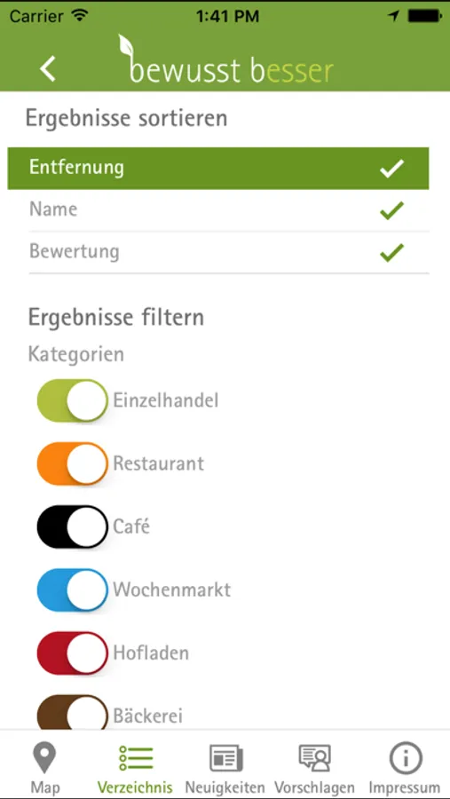 Egal, ob du Genießer, Sportler, Vegetarier oder Veganer bist, die Region unterstützen möchtest oder dir bestimmte Lebensmittel Probleme bereiten: Mit unserer App wirst du nie wieder lange suchen müssen. Du bist nur ein paar Klicks von deinem nächsten Ziel entfernt und sparst dir eine Menge Zeit mit deiner persönlichen Suche.