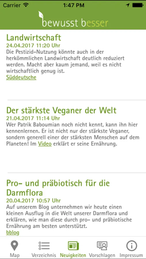 Gesundes Essen ist ein wichtiger Bestandteil für ein bewusst besseres Leben. Die kostenlose App hilft dir bei der sorgenfreien Suche nach Einkaufsmöglichkeiten, Einrichtungen oder Restaurants. Die integrierte Karte ermöglicht es dir, einfach und schnell deine Umgebung zu erkunden.