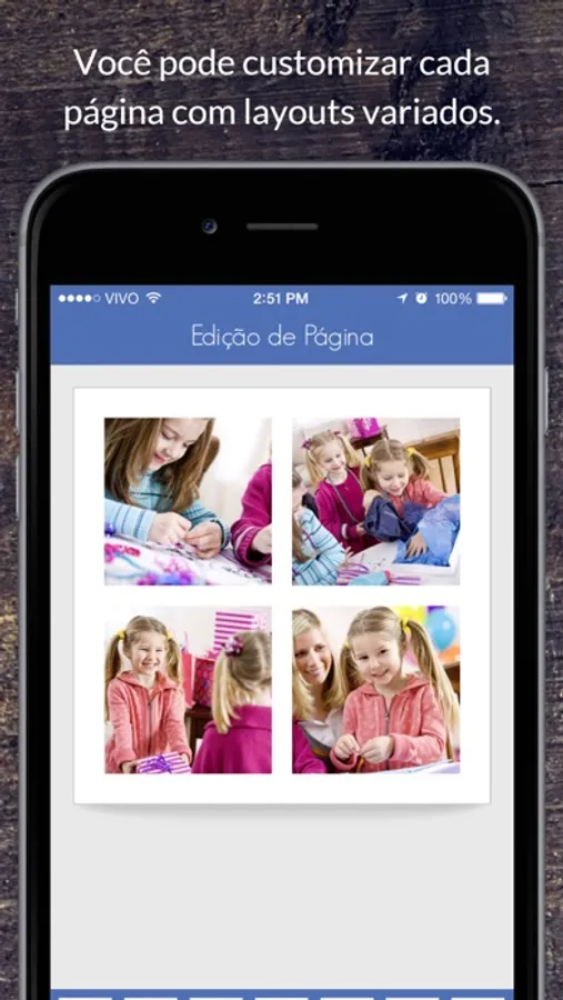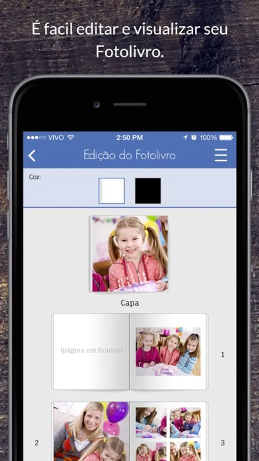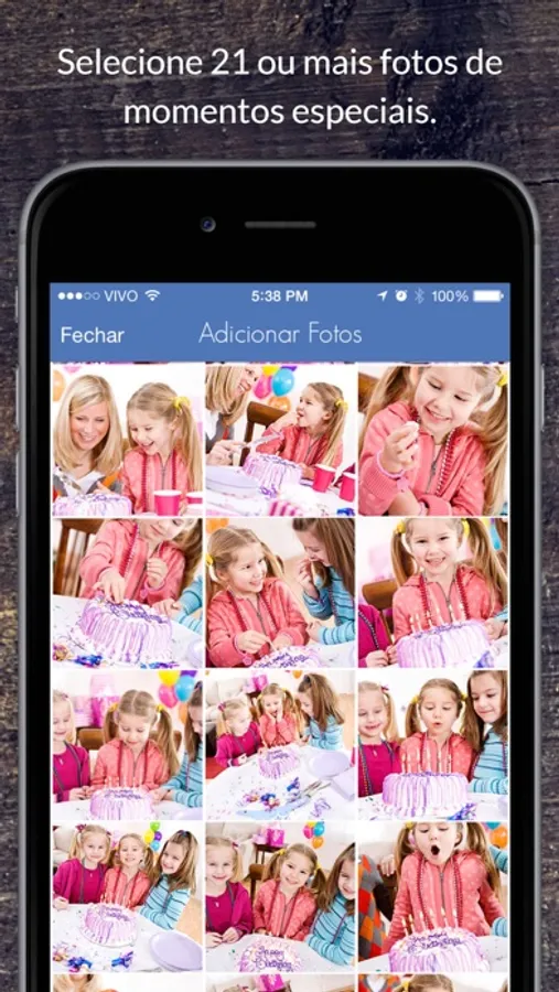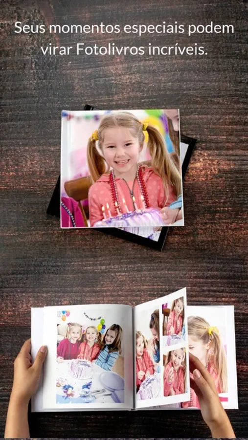 Você seleciona as fotos do seu rolo de câmera e em apenas 3 passos elas se transformam em lindos Fotolivros.