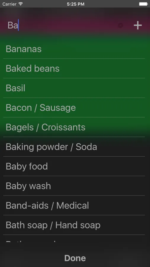 - To add an item, you can type it, speak it* or select it from your most used item.