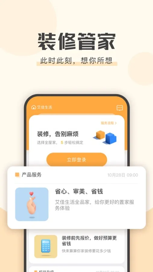 【专业管理】:艾管家为您家的装修全程监理,使您在线完成装修预订、签约、交款、交付监督的全流程。装修的每一个阶段进展,都在线呈现给您,直到完成一个完美的家。