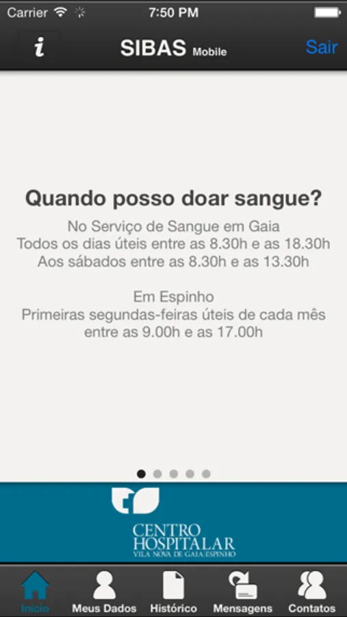 Com a aplicação do Serviço de Sangue do Centro Hospitalar de Vila Nova de Gaia/Espinho poderá aceder à sua página pessoal e obter todas as informações essenciais enquanto Dador, nomeadamente os registos das colheitas anteriores, resultados das análises, estado de isenção das taxas moderadoras (de acordo com a legislação em vigor), notificações pessoais, entre muitas outras.