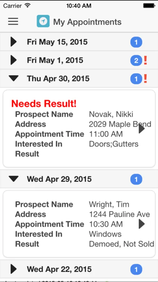 • Review all of your related prospects, appointments, sales, and projects