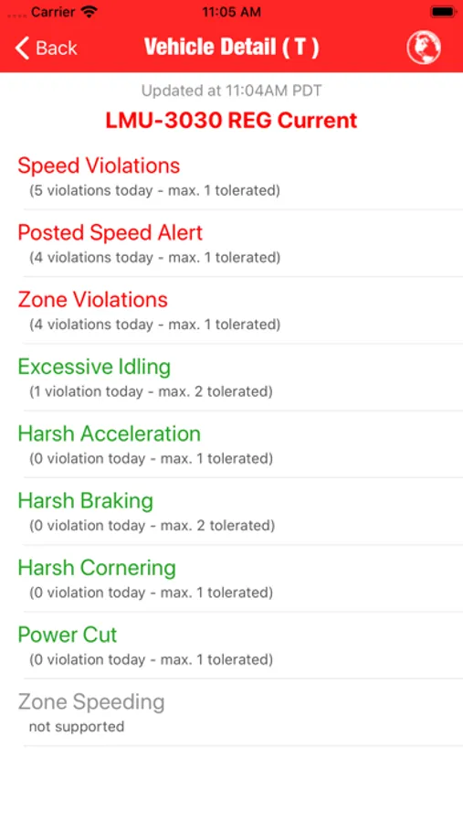 • View up-to-the-minute driver behavior data from your fleet, based on an established company policy