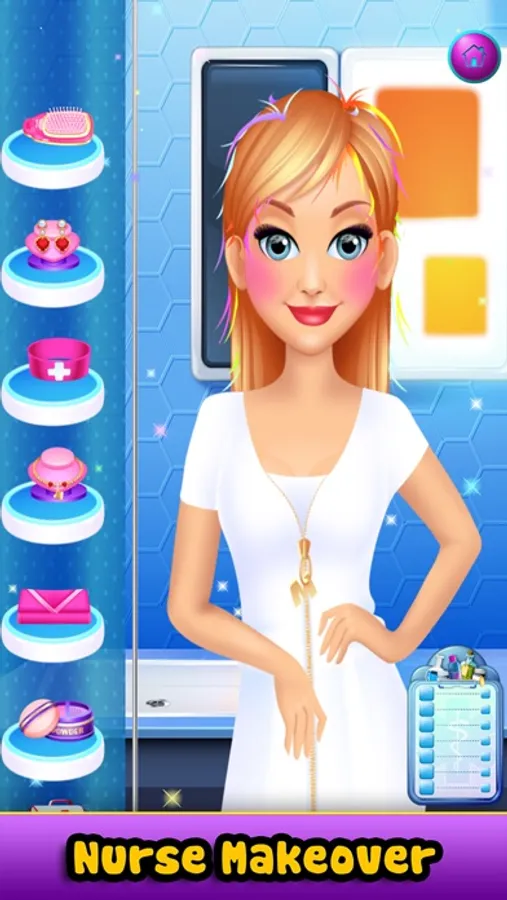 Level 4: Give a new makeover. Comb rainbow hair with the brush, add make-up, earrings, necklace and more!