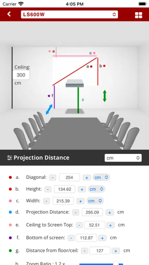 ViewSonic Projector summarizes the projector’s basic and advanced know-how to end users, installers, or distributors. It contains a bunch of practical information for choosing appropriate projectors in different scenarios. No matter small meeting room, middle classroom, or big hall, ViewSonic Projector tells you how far the projector should be placed according to the room ceiling height, projector’s screen size, aspect ratio, etc. Just input several figures, the result will be displayed in the simulation scenarios with measurement. You can use finger to adjust the distance instantly.