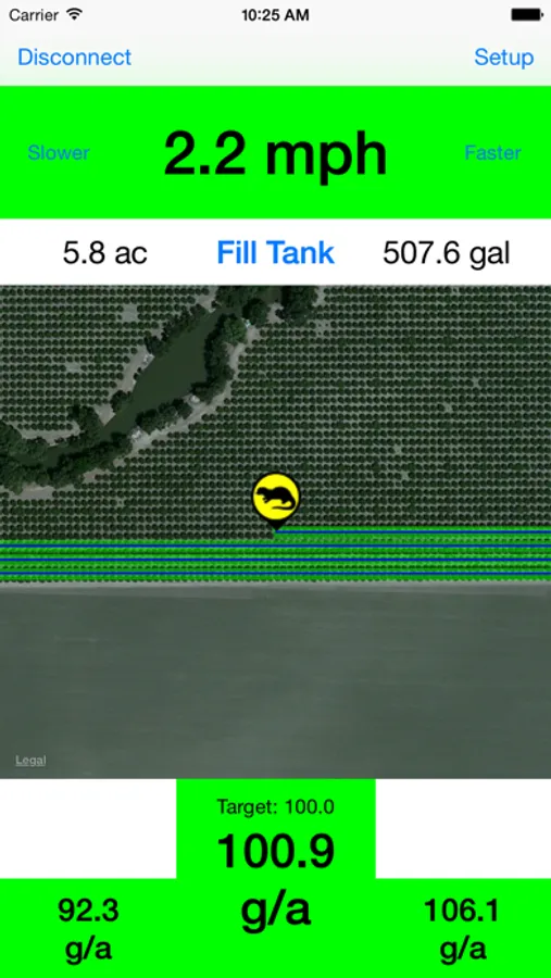 AgOtter is a flow control device that uses additional sensors to augment GPS when under orchard canopies. Now you can see your flow rates and your position in the field when GPS is blocked by the trees. Wirelessly connected to the mobile device, the AgOtter works with a simple install and can be monitored at anytime using the AgOtter app. Swath Width, Target Rate, Meter Cals and Antenna Offset can be changed from the app. Simulate GPS speed when testing flow at the shop before heading out to the field. Also, get yellow or red warnings on screen when the speed or rate is out of limit.