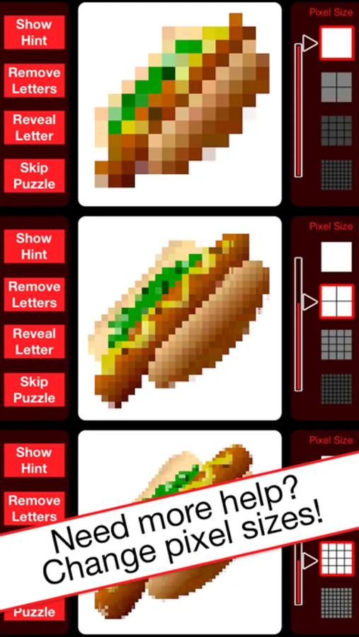 Simple, yet challenging. Incredibly addictive! Pixel Guess will make your brain think about the world in a whole new way. Can you use the colors, shapes and unique details of the pixelated objects to discover their secret identities? Can you do it faster than your friends and family?