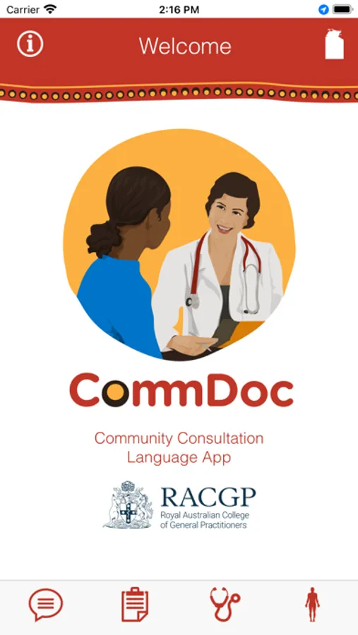 CommDoc is an Australian language tool developed for GP Registrars and other health professionals working in communities across the Northern Territory, to culturally enhance interactions with Aboriginal patients. The tool provides audio translations of common terms in medical consultation in different Aboriginal languages spoken in the Territory. Terms and phrases are categorised into four major sections: Common terms, History, Examination and Body parts. The tool has been developed by Northern Territory General Practice Education (NTGPE) in consultation with clinics, communities, doctors, cultural educators and interpretive services.