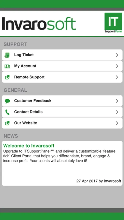 ITSupportPanel is for use by clients of IT providers who use our service, this application allows quick access to IT provider resources via registration with details provided by your IT provider.