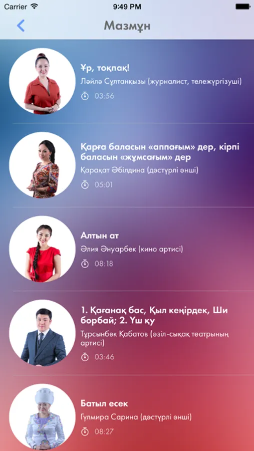 Жобаға енгізілген ертегілер мен аңыздарды әрлеуге пайдаланылған музыкалық шығармалары үшін дәстүрлі орындаушыларға шексіз ризашылығымызды білдіреміз!