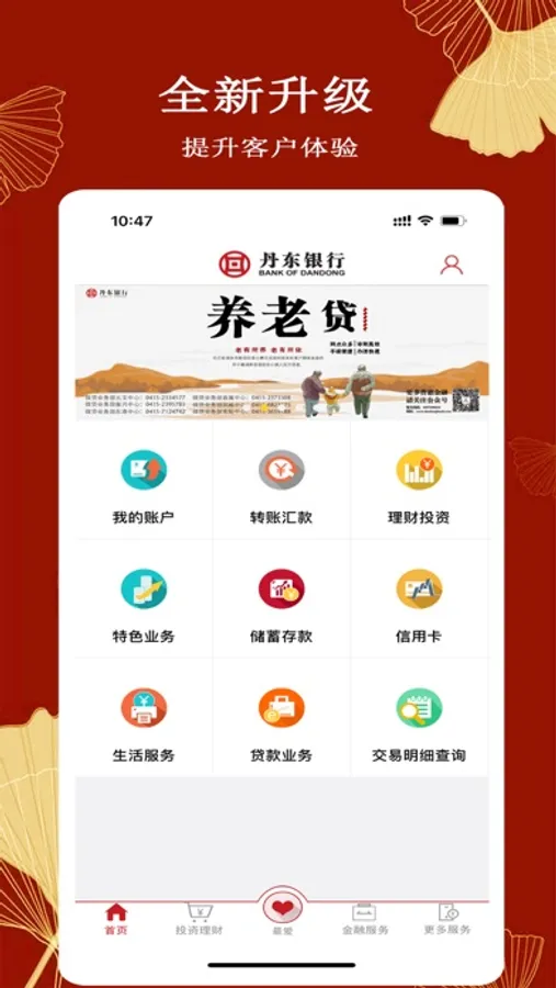 精彩生活,丹行相伴。丹东银行手机银行全新升级、华丽绽放,新版手机银行本着提高客户体验和满足客户业务需求的原则,拥有全新的视觉及操作体验,为客户打造一站式缴费、转账、查询、理财的便捷银行。