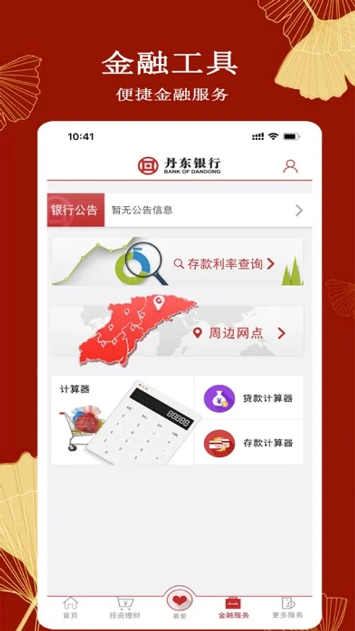 灵活的金融投资:提供不同天数的理财、储蓄产品,根据您的风险承受能力及资金情况自主选购适合您的投资产品,为您的收益添砖加瓦。