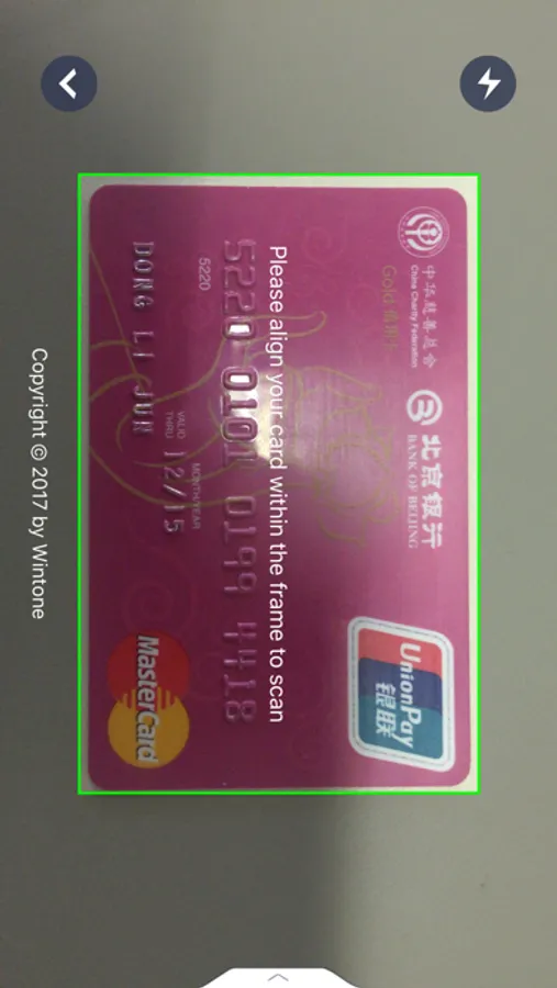• Integrate Wintone SmartVision Bank Card into other applications easily through calling recognition Activity;