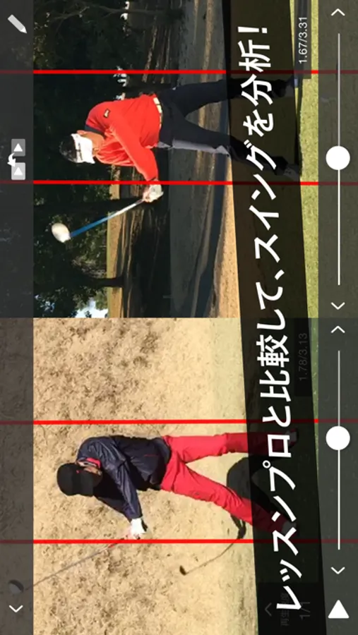自分のスイングを撮影して、お手本スイング動画と手軽に比較できます。