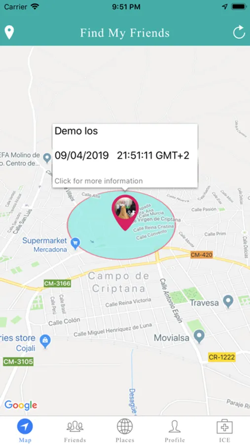 Besides all that, Find my children - Find Friends has a feature you care because it has implemented a system ICE (In Case of Emergency), which, with the push of a button you can send a notification / email users who have previously configured. With the street number, town etc ... from which you pressed the button on ICE