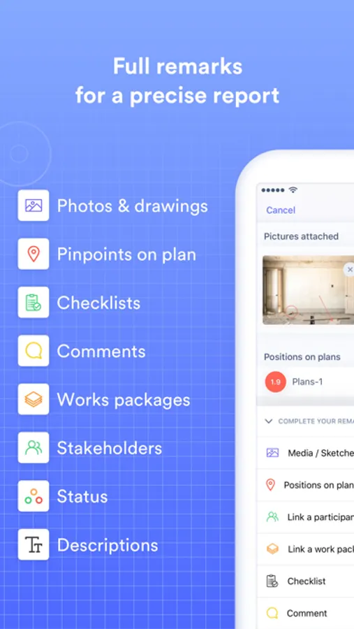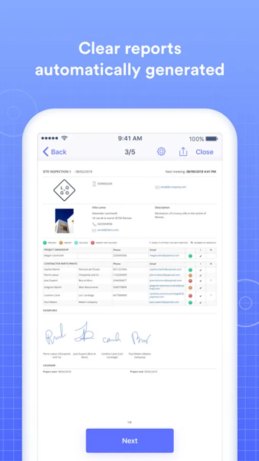 ArchiReport is a comprehensive site management app for iPad, iPhone and Web (PC or Mac). It automatically produces detailed reports with photos, drawings, plans and notes.