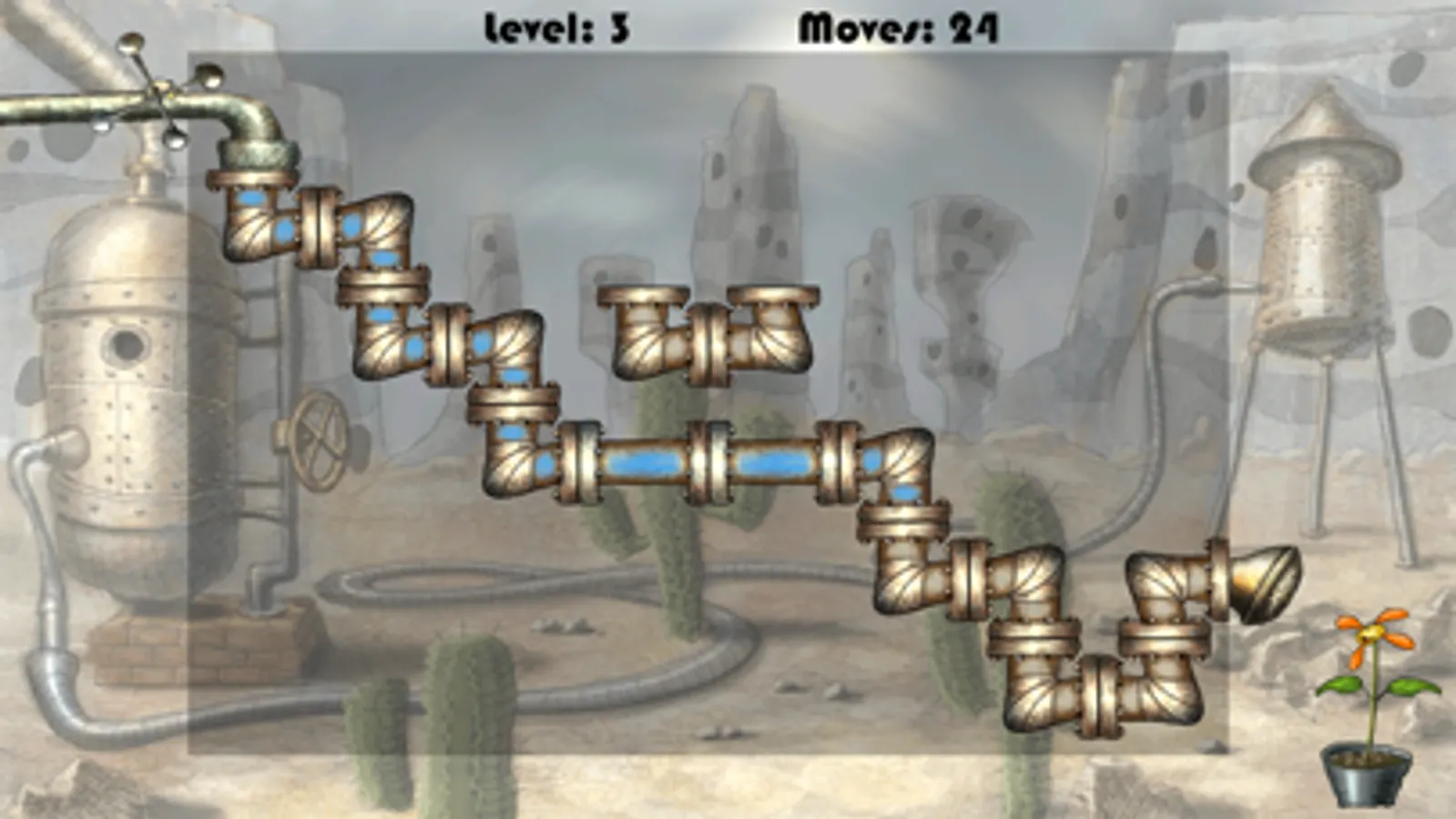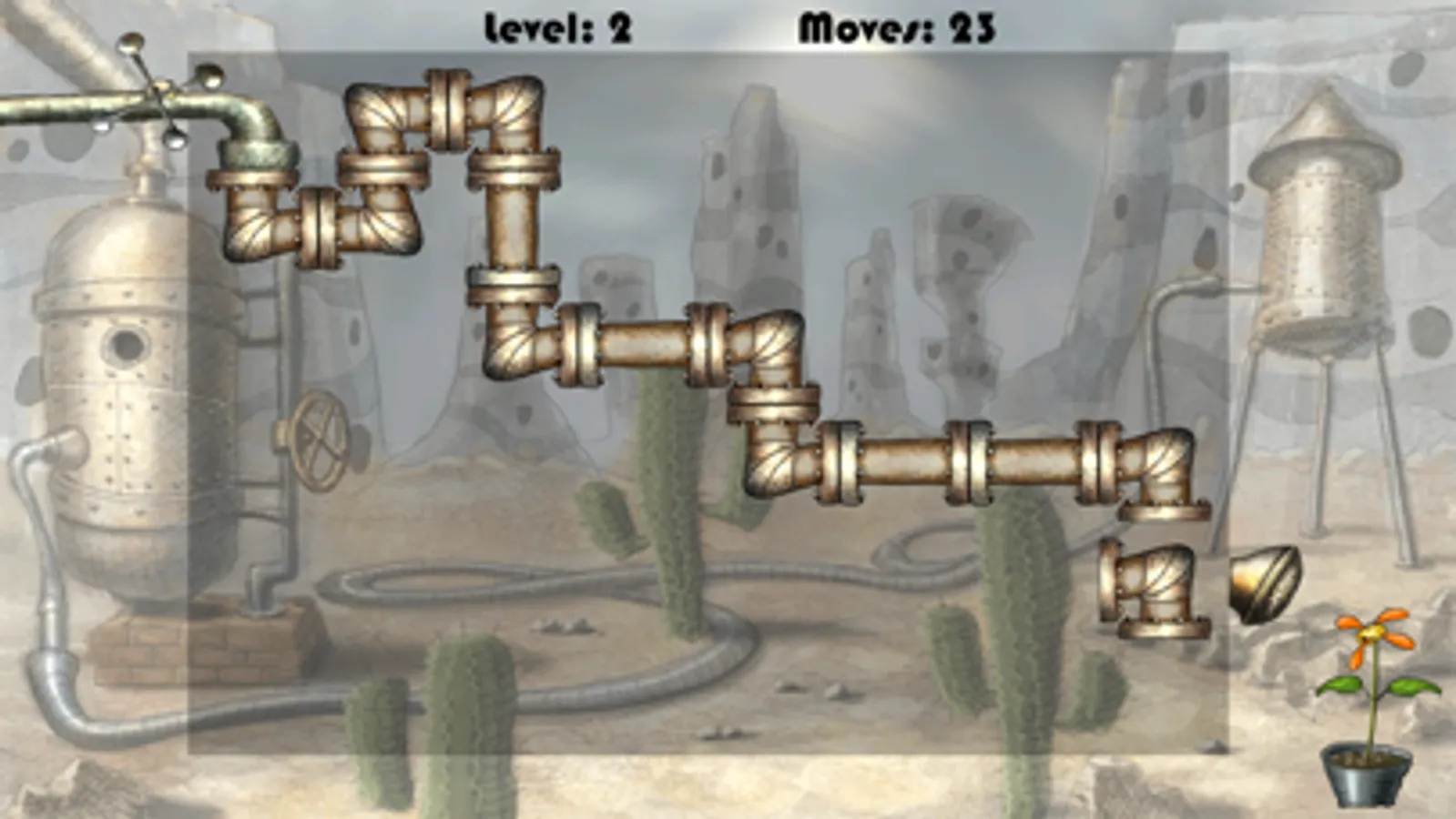 In the hottest desert water is a scarce resource. A little flower needs water to survive. Connect the pipelines to bring water and save the flower.