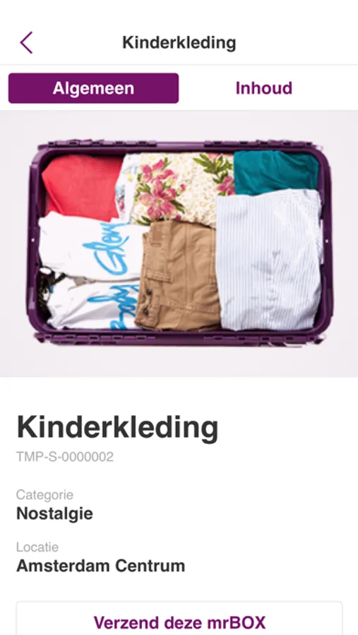 Ik stuur handige opbergboxen naar je toe, die jij kan vullen en met deze app kan registreren wat je erin stopt. Daarna haal ik deze boxen met jouw spullen erin weer op, met deze app kun je je spullen wanneer je ze weer nodig hebt weer terug laten brengen!