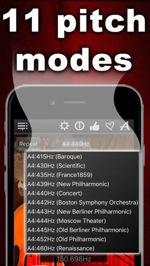 Simple and powerful, this cello tuner is both in one! You can listen the sound of each tuning string as well check & fine-tune the strings with the help of the chromatic tuner, placed in the middle of the app window!