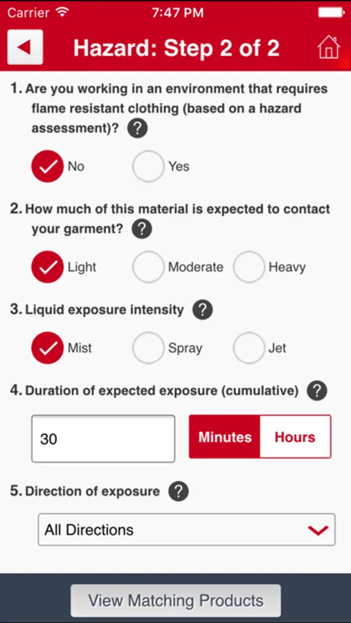 * SafeSPEC™ Mobile also features a check system that validates garment selections based on user input for specific hazard scenarios.