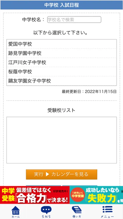 受験生を応援する晶文社の「受験案内アプリ」が、試験本番までの1年間をサポート! 書籍版『高校受験案内』『中学受験案内』と併用することで、より効率的な志望校選びができます。「高校」には偏差値・部活検索などの機能を搭載。「中学」には偏差値・部活検索、入試日程を管理するスケジュール機能などを搭載。