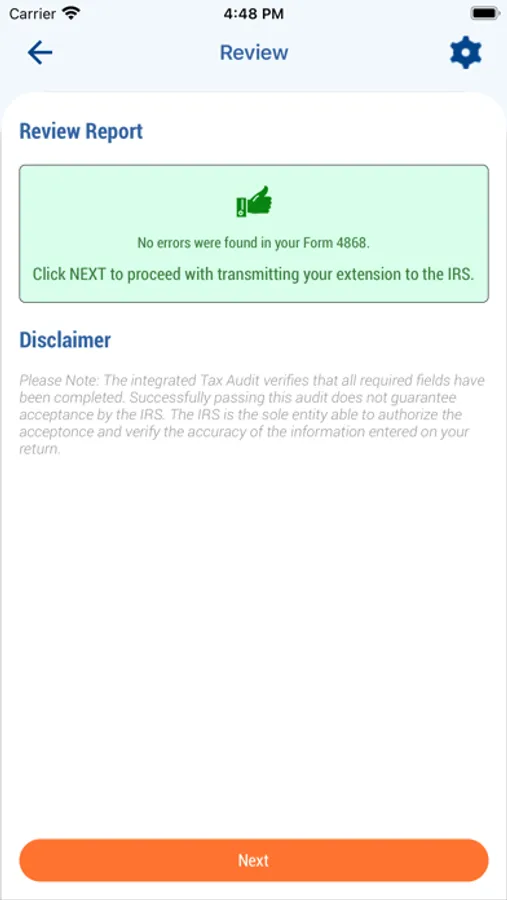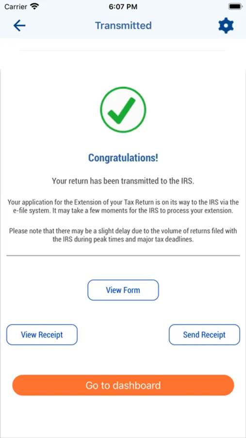 Once your extension is transmitted, you will receive instant email notifications regarding the IRS status of your form.