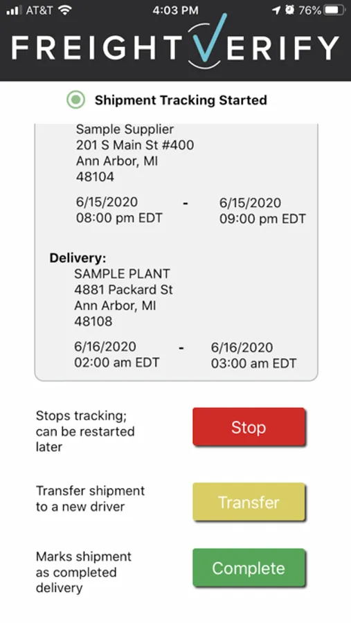 FreightVerify offers a mobile application option for drivers to provide comprehensive location updates for their carrier organization. By using our mobile application, driver’s don’t have to worry about complex reporting or status updates just to tell us where they’re located and how their route is progressing!