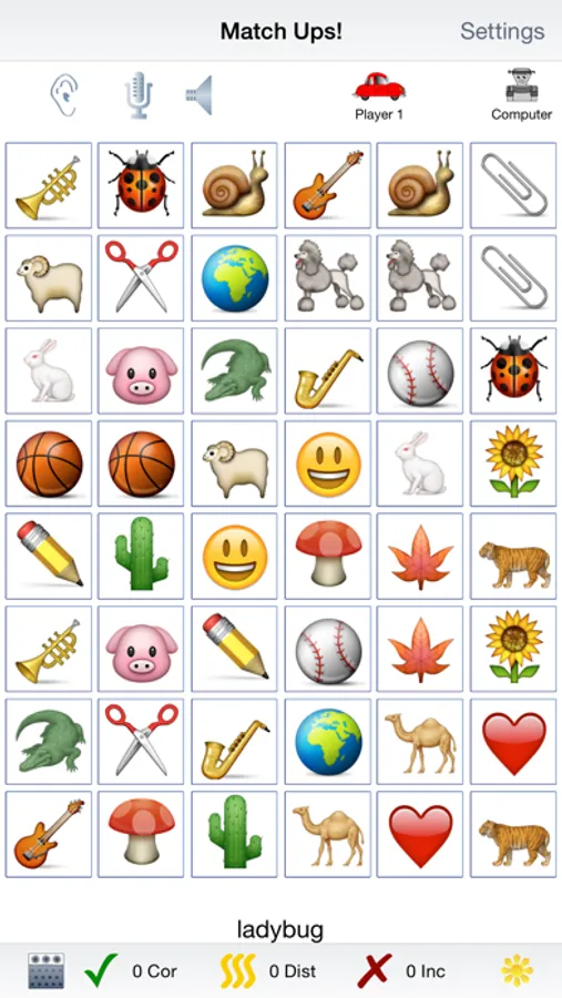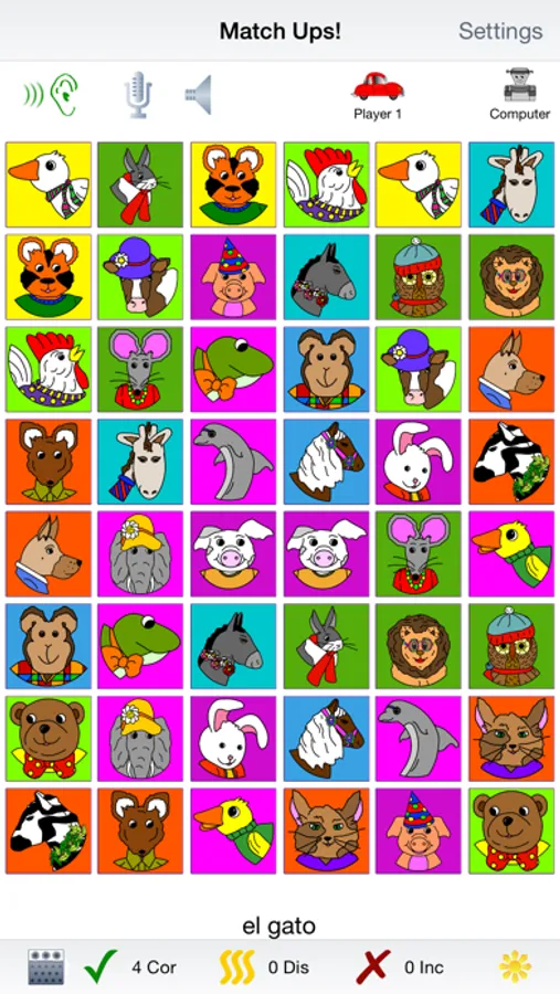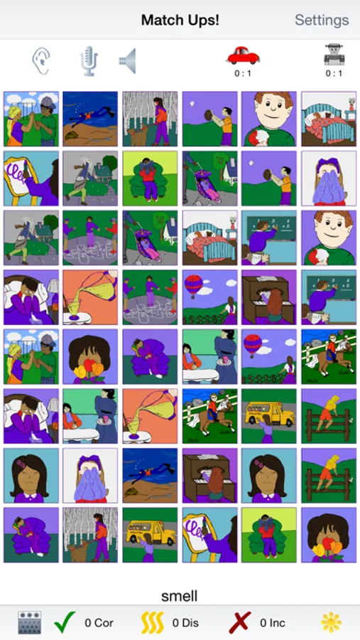 Match Ups! is primarily a fun memory game, but we added sounds and text so you can use it as a learning exercise as well. Special education teachers can use it to develop a fund of knowledge and to practice turn taking. SLPs can use it as an aphasia exercise, for speech articulation practice, or as a visual scanning task. SLPs tell us that they often use it as a reward at the end of a therapy session.