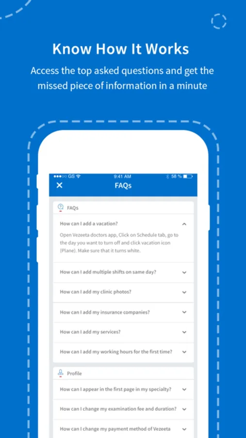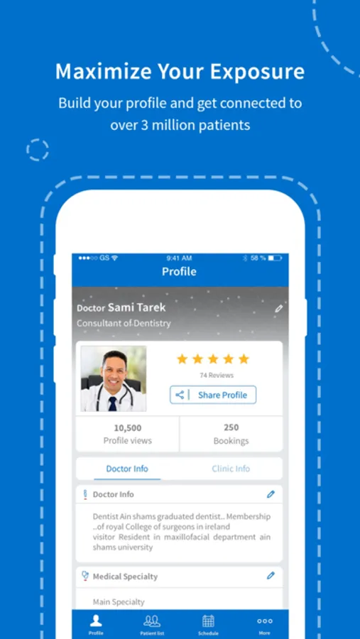 Vezeeta for Doctors app will allow you to list yourself on Vezeeta website, manage your profile and organize your clinic efficiently. Keep your profile updated with the latest information about you and your clinics to increase your reach.
