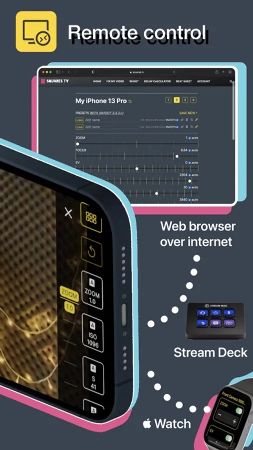 • Apple Watch App for switching cameras, controlling zoom, exposure, focus and white balance so you can adjust the picture from where you’re sitting or standing