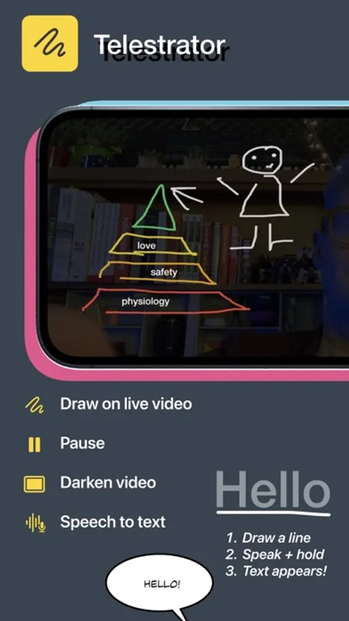 Shoot gives you a rock-solid connection to your iOS device’s camera for meetings and live streams. It's easy to connect and you get full manual camera controls when you need them. With Shoot's telestrator you can draw and add text (using your voice) on top of your video feed to quickly illustrate a point on-camera, or annotate whatever your camera is pointed at. You can pause the video to make this easier.