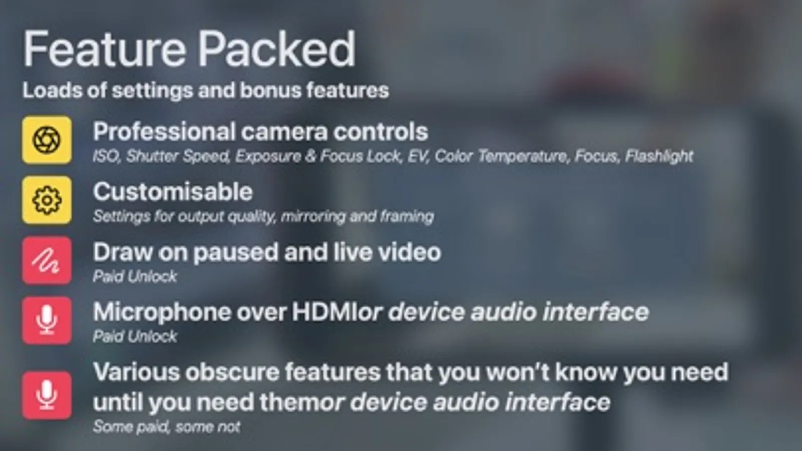 “The best app to turn your iPhone into a webcam by far!” - Talks Of Our Time Podcast