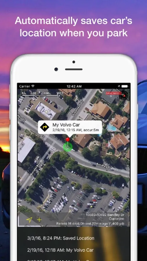 * Locate where your car is parked. Automatically. Using a healthy mix of Bluetooth, cables, sensors, and iPhone magic! This is a unique feature in the iTunes App Store.