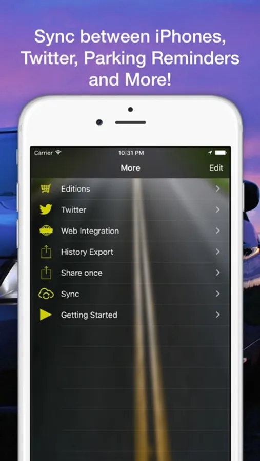 * Sync your cars latest parked position to your iPad or share with friends and family.