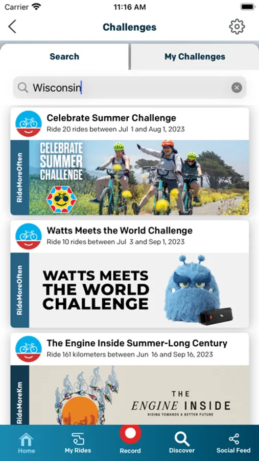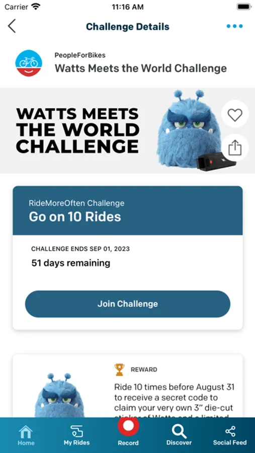 Discover upcoming rides and exciting route-based Challenges sponsored by local businesses. After completing a Challenge route, you can claim your award from your favorite shops and brands.