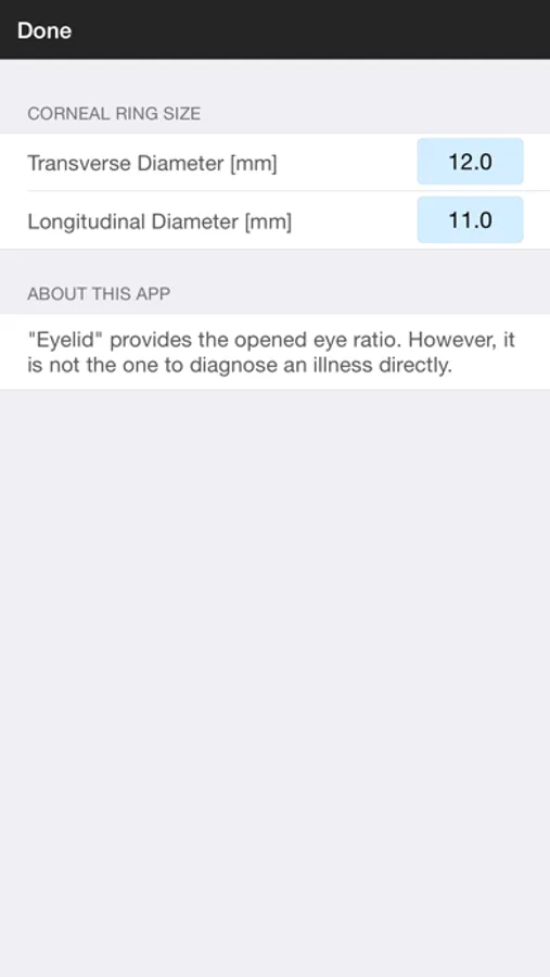 - You can change the initial corneal size (transverse diameter and longitudinal diameter) .
