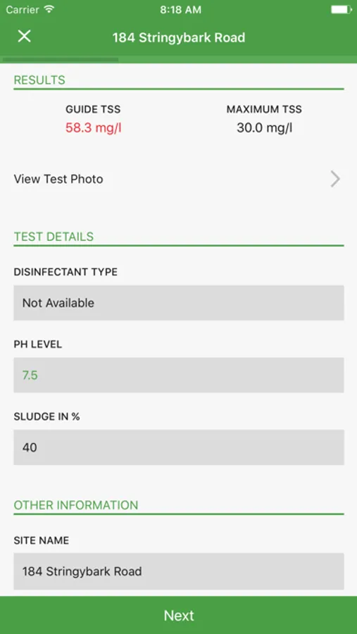 Disclaimer: OMA App is a tool to aid in the collection and reporting of field data for a number of onsite wastewater facility indicators. The OMA app does not replace the requirement for laboratory testing. The TSS results supplied by the OMA App are an indicator only. Accuracy of the TSS indicator results generated by the OMA App can be affected by field conditions and method of operation outside the control of OMA App. The TSS indicator should not be read in isolation but in conjunction with all data provided by the approved app user to the Local Authority and facility owner. This includes all data in the service report, including but not restricted to: